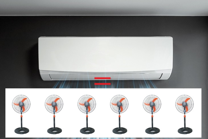 Sau khi đã biết được mức công suất tiêu thụ điện trung bình của quạt điện và điều hòa, bạn sẽ có thể tính được 1 máy lạnh bằng bao nhiêu quạt. Cụ thể như sau: