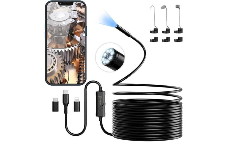 Mặc dù không phải là thứ bạn sẽ sử dụng hàng ngày, nhưng camera nội soi này chắc chắn sẽ rất hữu ích trong nhiều tình huống. Bạn chỉ cần cắm nó vào điện thoại, cài đặt ứng dụng và xem mọi thứ camera làm được. Nó có thể được dùng để tìm bất cứ thứ gì họ đánh rơi sau bàn làm việc, khi đang sửa xe, hoặc tìm kiếm rò rỉ đường ống. Vì nó được trang bị chuẩn chống nước để có thể tìm chiếc nhẫn bị rơi vào bồn rửa hay thậm chí là đi câu cá. Camera sẽ đi kèm với một dây cáp bán cứng dài và một số phụ kiện như móc, nam châm và gương.