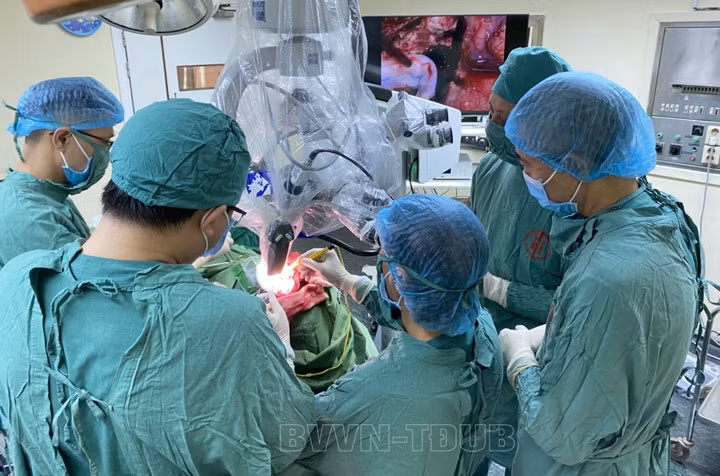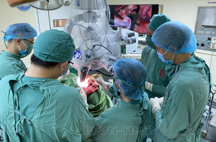Tiến hành hội chẩn liên khoa, các bác sĩ nhận định đây là một ca phẫu thuật phức tạp do vị trí khó tiếp cận, ảnh hưởng đến rất nhiều chức năng quan trọng, nguy cơ chảy máu cao, nguy hiểm đến tính mạng. Để đạt được hiệu quả cao, các bác sĩ đã thống nhất tiến hành phẫu thuật vi phẫu cắt u màng não bằng kính hiển vi phẫu thuật.