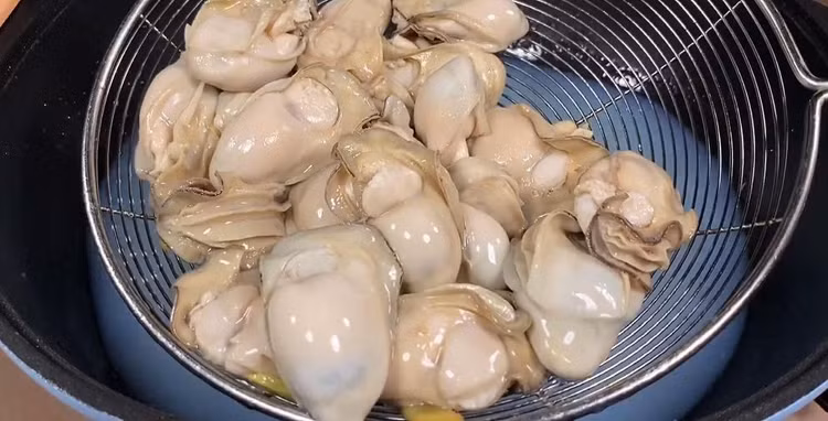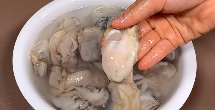- Chuẩn bị một 3-4 lạng ruột hàu. Rửa sạch bằng bột mì và đặt sang một bên.