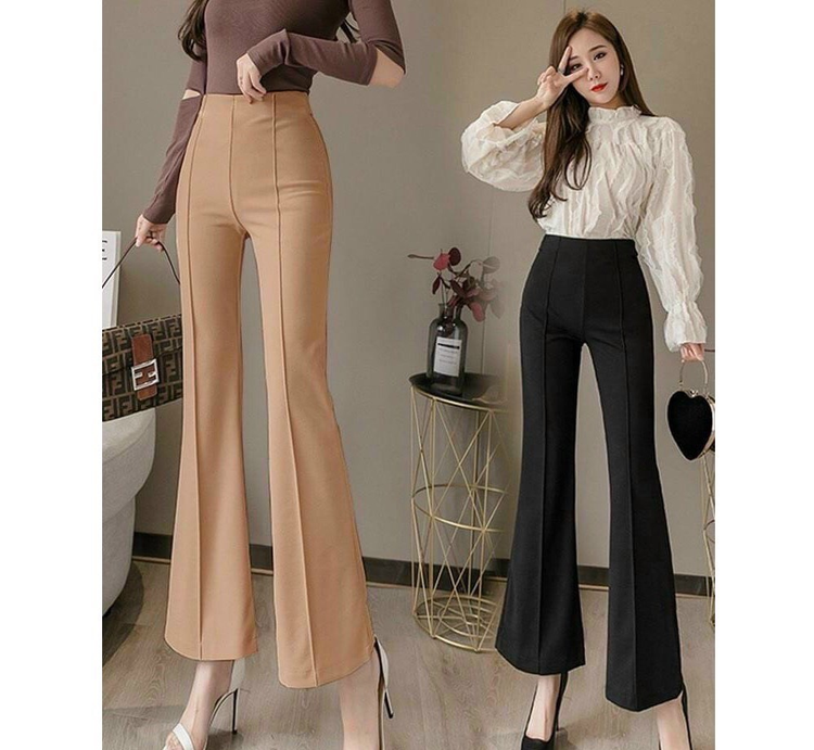 Quần ống loe có thiết kế đặc trưng vớI dáng ôm nhẹ phía trên và loe ra ở phần bắp chân. Đặc điểm này khiến đôi chân của người mặc trở nên thon gọn và thẳng hơn. Chưa hết, khi kết hợp với phần cạp cao càng giúp chị em ăn gian tỷ lệ cơ thể, giúp phần thân dưới trông dài hơn rất nhiều. Với những ưu điểm này, quần ống loe là một lựa chọn tuyệt với cho những cô nàng cần hack chiều cao.