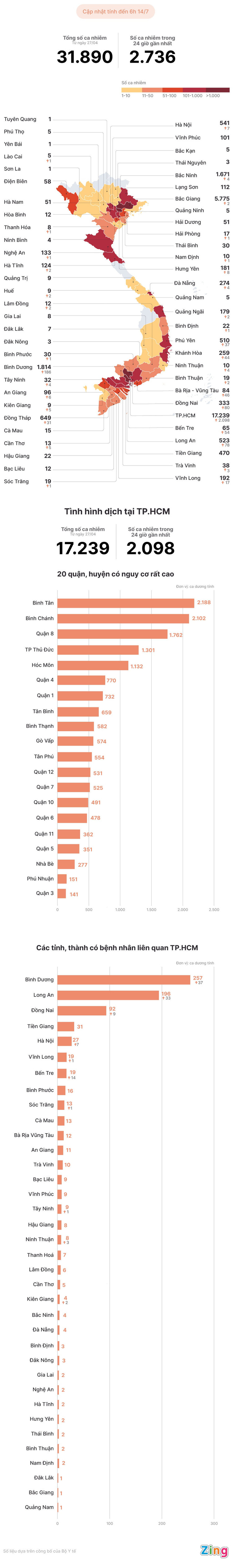 TP.HCM đang có số ca nhiễm SARS-CoV-2 cao nhất cả nước với 17.239 người. Nhiều quận, huyện được đánh giá có mức độ nguy cơ rất cao trên bản đồ dịch Covid-19 của Bộ Y tế.