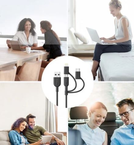 Anker là thương hiệu chuyên sản xuất phụ kiện cho điện thoại và máy tính. Phụ kiện của hãng luôn được đánh giá rất tốt từ thiết kế bên ngoài đến chất lượng bên trong của sản phẩm. Cáp sạc Anker Powerline II được thiết kế với 3 đầu nối bao gồm: Micro-USB, USB-C và Lightning, giúp đơn giản hóa việc sạc pin hàng ngày của bạn chỉ với một cáp sạc duy nhất.