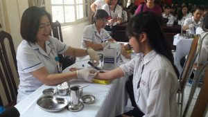 Lấy máu xét nghiệm bệnh tan máu bẩm sinh cho học sinh trường Trần Phú, Hà Nội.