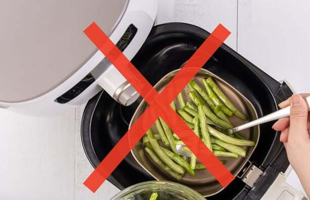 Bạn nên tránh tuyệt đối việc cho các loại rau xanh như rau diếp, rau chân vịt vào nồi chiên không dầu.