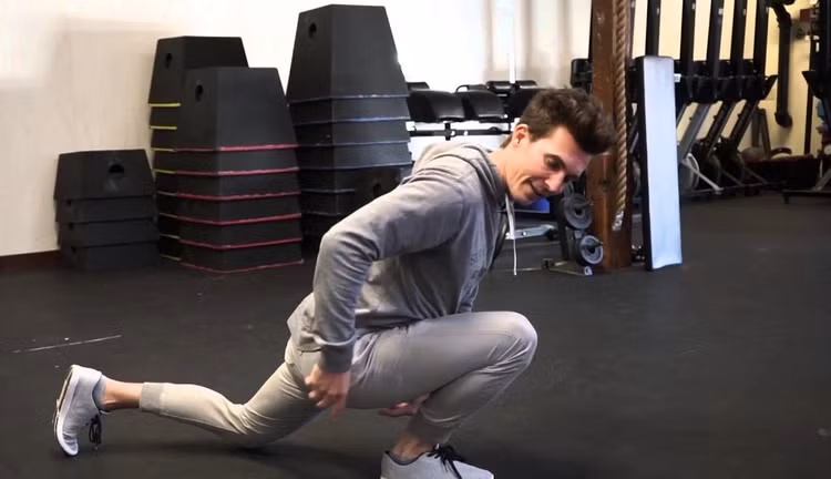 Để tập động tác này, bạn bước một chân lên trước, gập gối. Đầu gối chân còn lại chạm gần sát đất. Có thể đi tiếp nối ở tư thế gập chân này hoặc tập tại chỗ, thu chân về rồi đổi bên.
