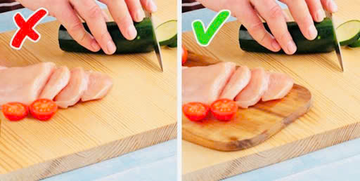 Cần tách riêng thực phẩm sống với thực phẩm đã nấu chín để tránh nguy cơ mầm bệnh lây nhiễm chéo, từ đó dẫn tới ngộ độc thực phẩm. Ngoài ra, mọi người cũng nên dùng riêng các dụng cụ như dao, thớt khi chế biến thực phẩm sống.