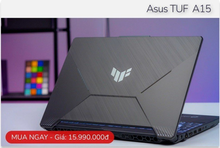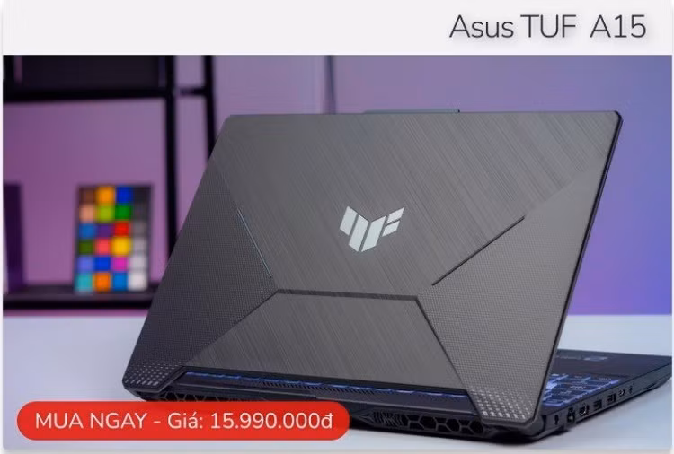 Lựa chọn đầu tiên là TUF, dòng sản phẩm tầm trung của ASUS chỉ với 16 triệu đồng bạn đã có thể sở hữu chiếc TUF A15. Máy sở hữu thiết kế góc cạnh, lượng cổng kết nối dồi dào, cấu hình hướng tới gaming bao gồm màn hình 15.6 inch FullHD 144Hz, Ryzen 5 4600H và card GeForce GTX 1650 đi kèm 8GB RAM cho sẵn.