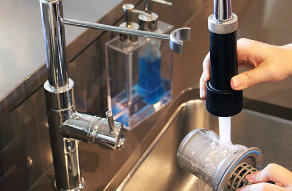 6. Rửa sạch khay lọc rác bồn rửa bát bằng bàn chải đánh răng
