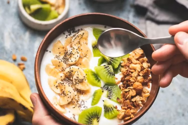 Sữa chua không đường kết hợp với yến mạch hoặc granora