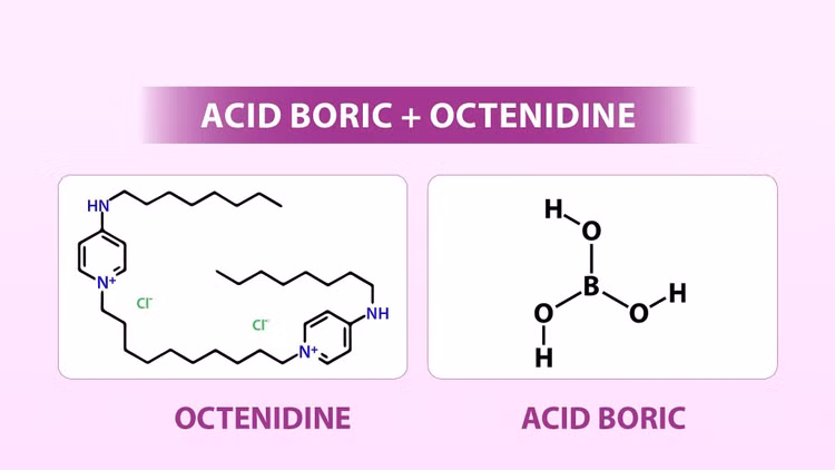 Tác dụng phổ rộng trên cả nấm, vi khuẩn, trùng roi của Acid boric và Octenidine dihydrochloride