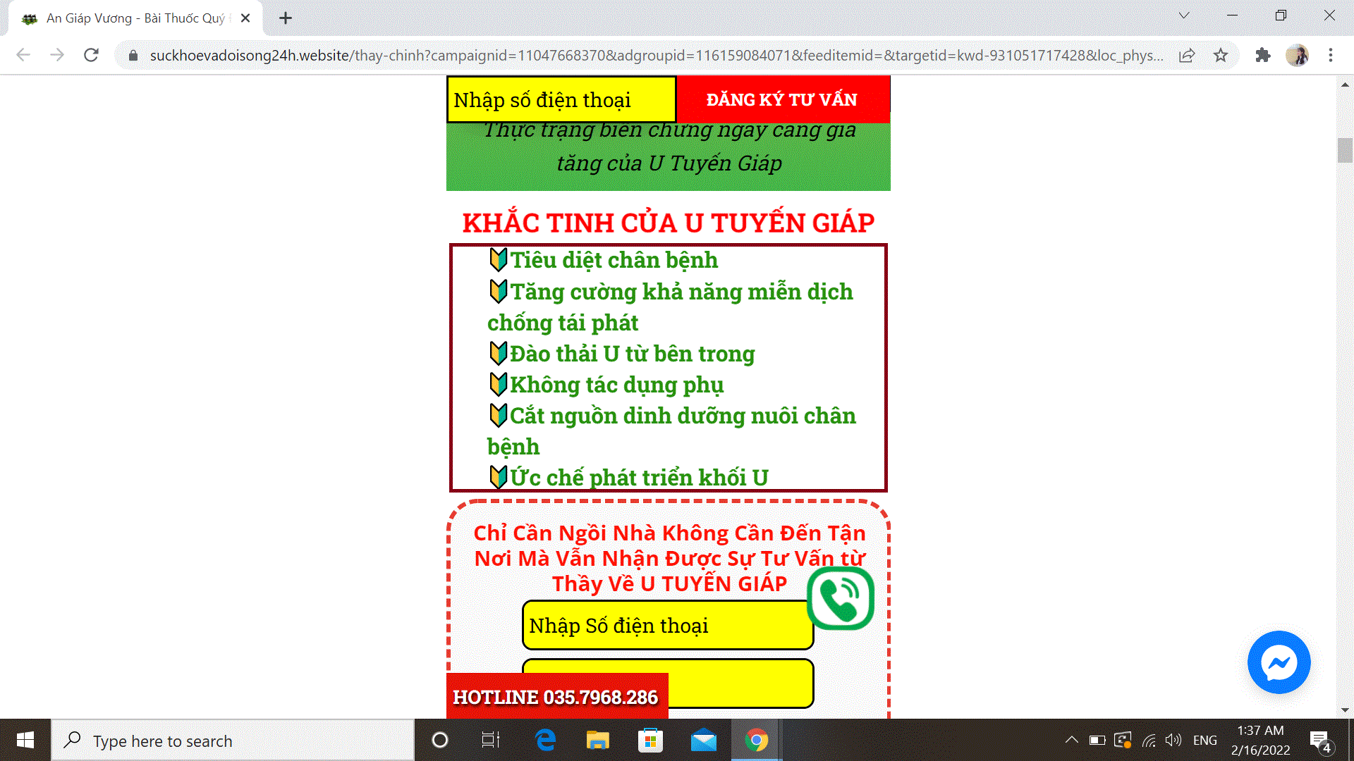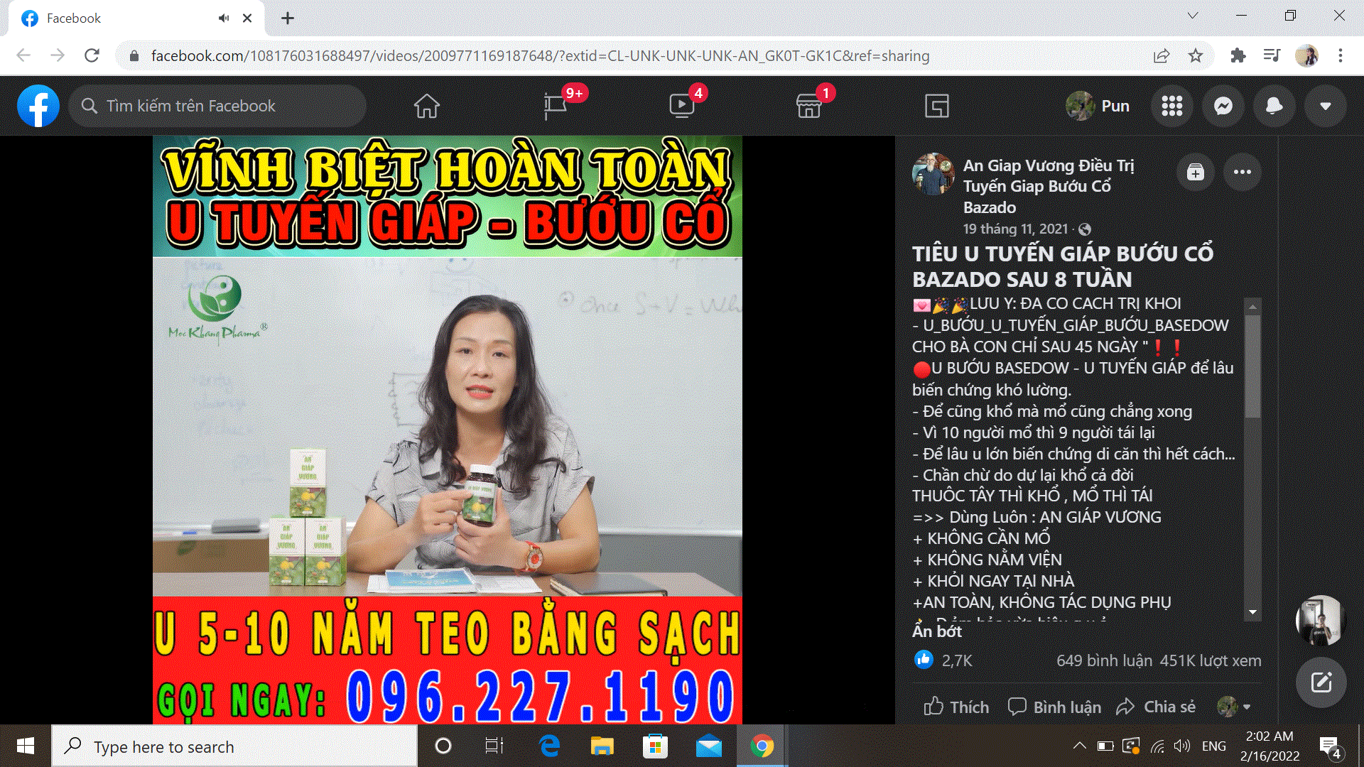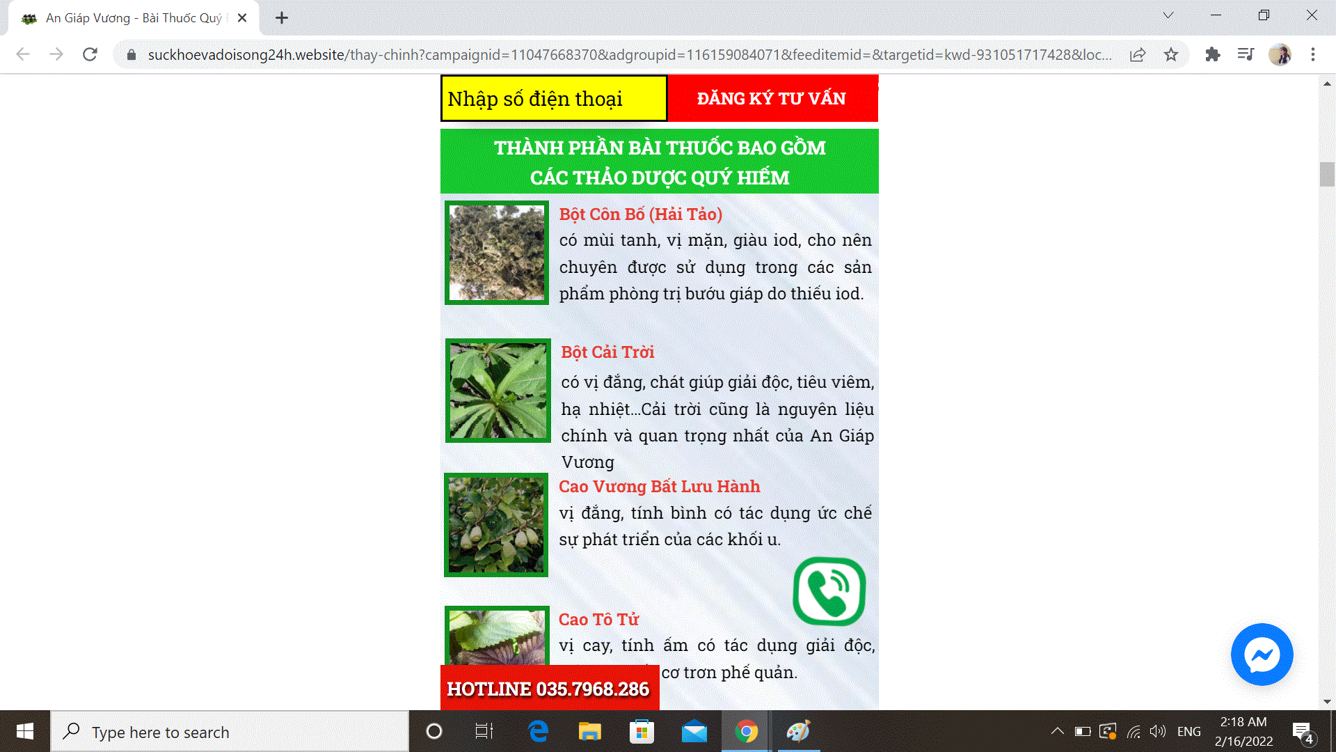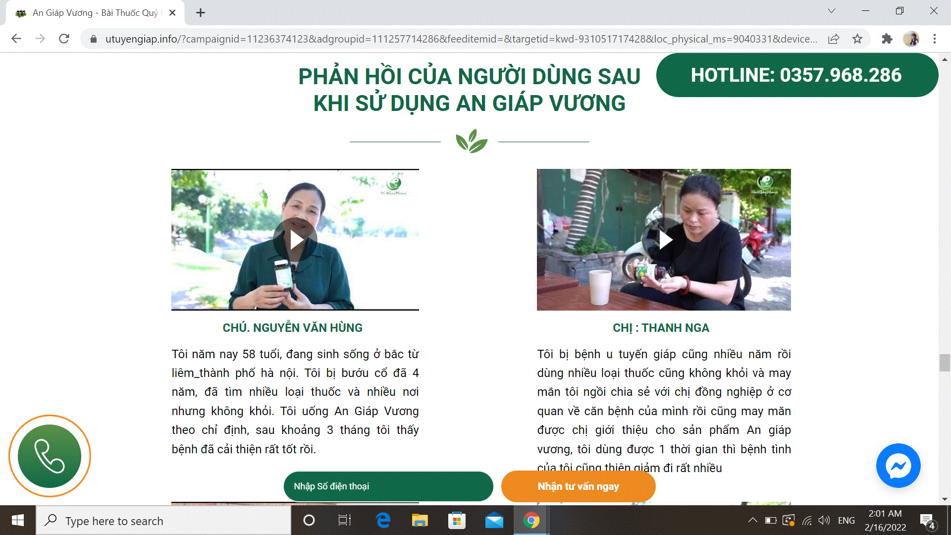 Cụ thể, tại website angiapvuong... sản phẩm An Giáp Vương mặc dù chỉ là TPBVSK nhưng lại đang được “nổ” với công dụng điều trị dứt điểm bệnh tuyến giáp giống một loại thuốc đặc trị. Phóng đại sự thật hơn nữa, sản phẩm này còn được quảng cáo như “thần dược” có khả năng chữa dứt điểm bệnh tuyến giáp ngay tại nhà mà chẳng cần trải qua phẫu thuật.