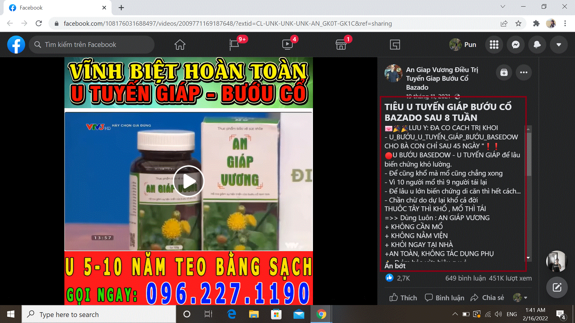 Fanpage này quảng cáo “thần thánh” hoá công dụng của sản phẩm An Giáp Vương, lừa dối người tiêu dùng.