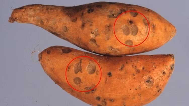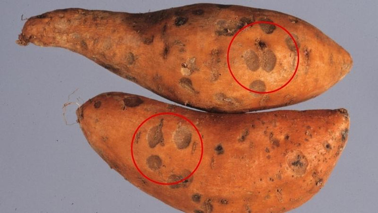 Khoai lang bảo quản không tốt sẽ rất dễ bị hà, xuất hiện những đốm đen, nhiều người không vứt bỏ mà cắt bỏ phần hà, đốm đen đi để luộc lên rồi ăn tiếp. Tuy nhiên việc xuất hiện những vết này có nghĩa khoai đã bị nhiễm khuẩn vằn đen ô nhiễm gây độc cho gan.