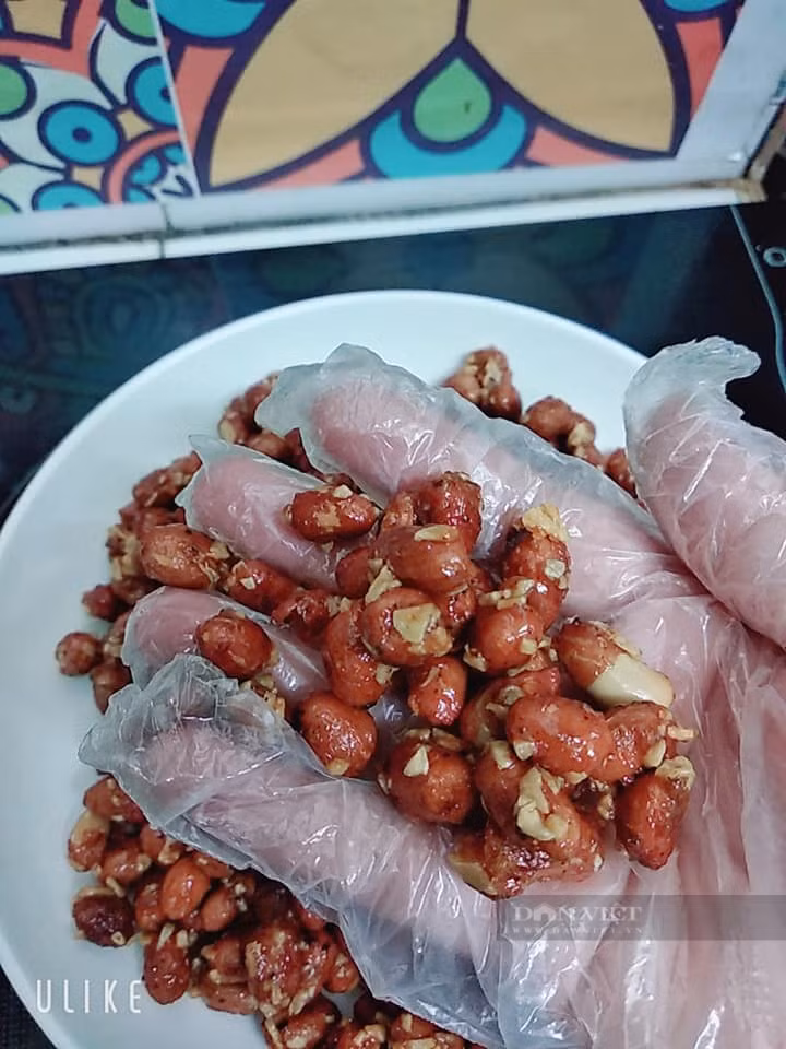 - Đổ lạc ra 1 cái rổ tre, đợi nguội bớt thì bắt đầu bóp bóp cho hạt lạc rời nhau nha. Khi nguội lạc sẽ giòn tan rồi cất vào lọ.