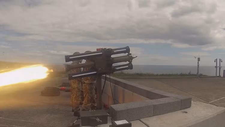Tên lửa đa năng hạng nhẹ đang được quân đội Anh bắn thử từ bệ phóng. Ảnh: Tạp chí quốc phòng Anh
