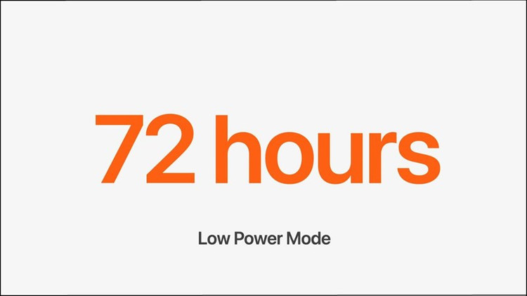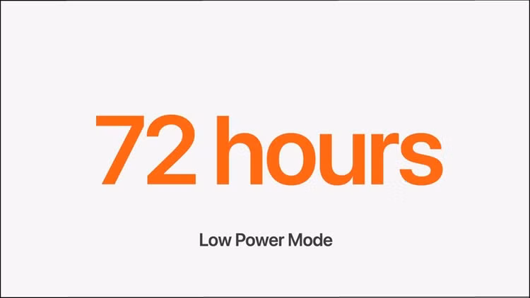 Thời lượng pin của dòng Watch Ultra vốn đã ấn tượng, nhưng với Apple Watch Ultra 2 còn tuyệt vời hơn với khả năng sử dụng lên đến 72 giờ ở chế độ tiết kiệm pin.