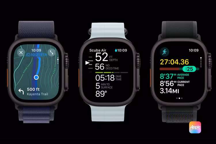Nâng cấp phần cứng cho Watch Ultra 3 cũng bao gồm màn hình OLED góc rộng đã xuất hiện trên Series 10 năm ngoái. Nâng cấp này biến Watch Ultra 3 trở thành màn hình lớn nhất từ trước đến nay trên Apple Watch. Mặt đồng hồ Waypoint mới, năng động sẽ giúp bạn liên tục định hướng khi sử dụng trên màn hình luôn bật, cho phép bạn xem nhanh vị trí của mình ngay cả khi đang lao xuống núi bằng hai bánh xe.