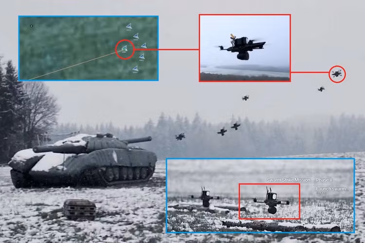 Bầy drone khóa mục tiêu, chia sẻ thông tin và phân công tiêu diệt cùng lúc nhiều đối tượng riêng lẻ.