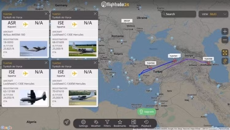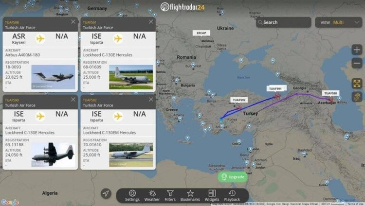 Một số máy bay vận tải của Không quân Thổ Nhĩ Kỳ đang thực hiện cuộc không vận tới Azerbaijan. Những máy bay này vận chuyển các trang thiết bị hạng nặng tham gia cuộc diễn tập chung ngày 5/10.