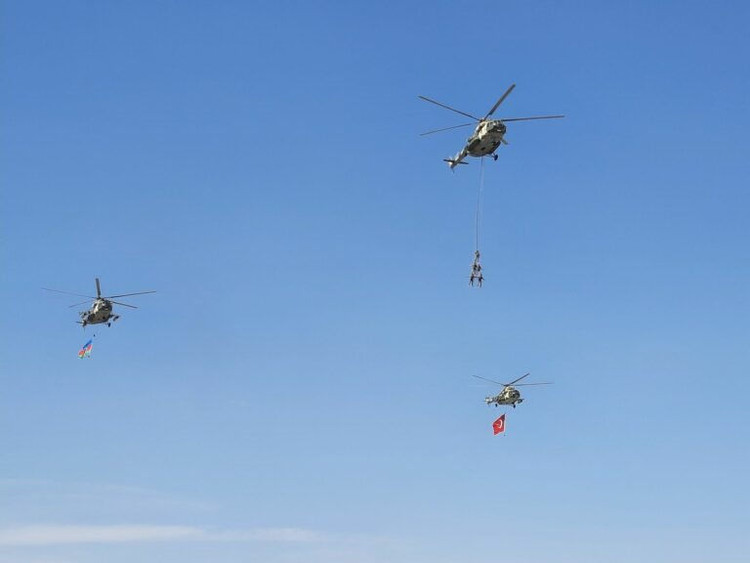 Đã có 4 máy bay vận tải quân sự hạng nặng của Thổ Nhĩ Kỳ bay đến Azerbaijan. Một chiếc Airbus A400M-180, một chiếc Lockheed C-130EM Hercules và hai chiếc Lockheed C-130E Hercules cất cánh từ các sân bay Isparta và Kayseri của Thổ Nhĩ Kỳ. Máy bay hạ cánh ở Sumgayut, phía bắc Baku, và sau đó cất cánh rời Azerbaijan.