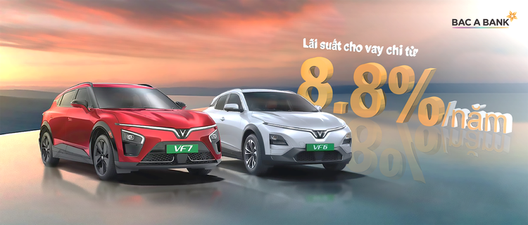 Đáp lại sự hưởng ứng tích cực của đông đảo Khách hàng trong suốt thời gian qua, Ngân hàng TMCP Bắc Á (BAC A BANK) tiếp tục triển khai Chương trình ưu đãi vay mua các dòng xe ô tô điện VinFast - mở rộng cơ hội sở hữu phương tiện hiện đại với chi phí vay hợp lý và thủ tục nhanh gọn.