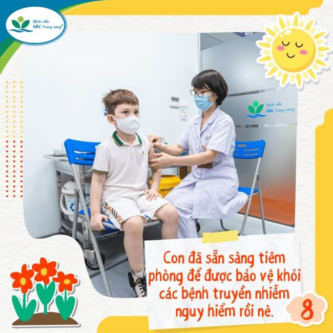 Tiêm phòng đầy đủ và đúng lịch: Trẻ sơ sinh và trẻ nhỏ có hệ thống miễn dịch chưa hoàn chỉnh nên khả năng chống chọi với bệnh tật chưa cao, tiêm chủng là một trong những biện pháp tốt nhất để bảo vệ bé khỏi các bệnh truyền nhiễm nguy hiểm thường gặp. Các mẹ nhớ cho con đi tiêm phòng đầy đủ và đúng lịch nhé.