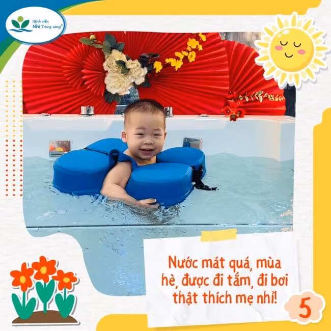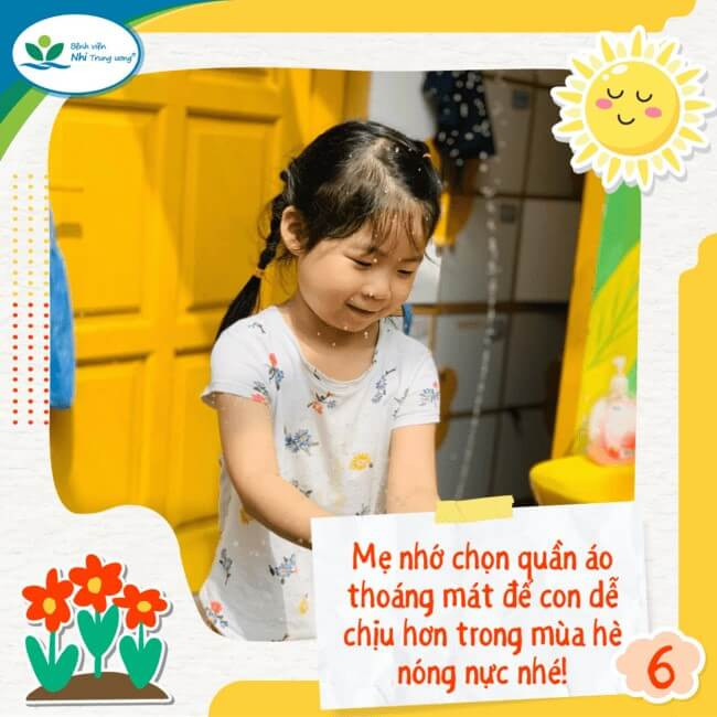 Đừng sợ nắng, nóng, cha mẹ hãy để con tự do vận động: Trẻ nhỏ cần vui chơi để phát triển. Trẻ giải phóng năng lượng qua việc chơi và lớn lên. Dù nắng nóng thì vẫn cần cho các bé hoạt động, chơi đùa cha mẹ nhé, đừng bắt con ngồi yên trong phòng điều hòa, làm vậy có thể khiến bé bí bách, khó chịu, chán ăn, ngủ kém…