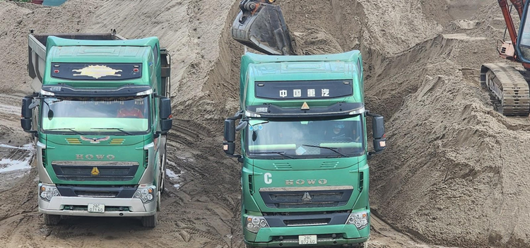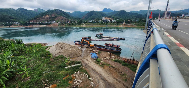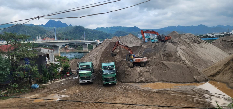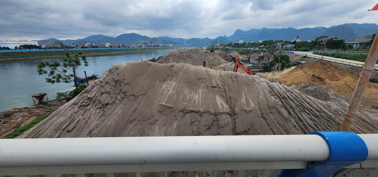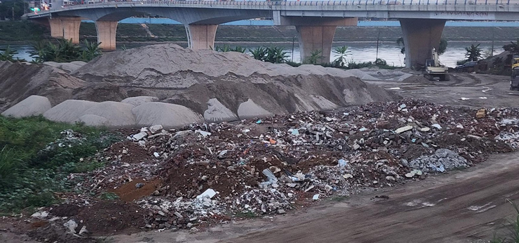 Hoạt động bốc, xúc cát diễn ra cả ngày đêm. Những "ngọn núi" cát sừng sững, ngang bằng chiều cao của cầu Hòa Bình 2 gây mất mỹ quan đô thị, tiềm ẩn nguy cơ gây ô nhiễm môi trường.