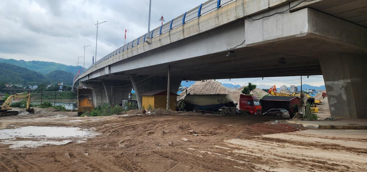 Ngay dưới gầm cầu là những công trình mọc lên trái phép, xâm hại nghiêm trọng kết cầu cầu. Cát và vật liệu xây dựng vương vãi gây bụi đường. Đoạn đường chân cầu Hòa Bình 2 được xem là một trong những cung đường đẹp nhất TP Hòa Bình, bám sông Đà và thông thoáng. Nhiều người dân đến đây để tập thể dục buổi chiều. Thế nhưng, khu vực này hiện bị ảnh hưởng bởi bụi bẩn và tiếng ồn máy móc.