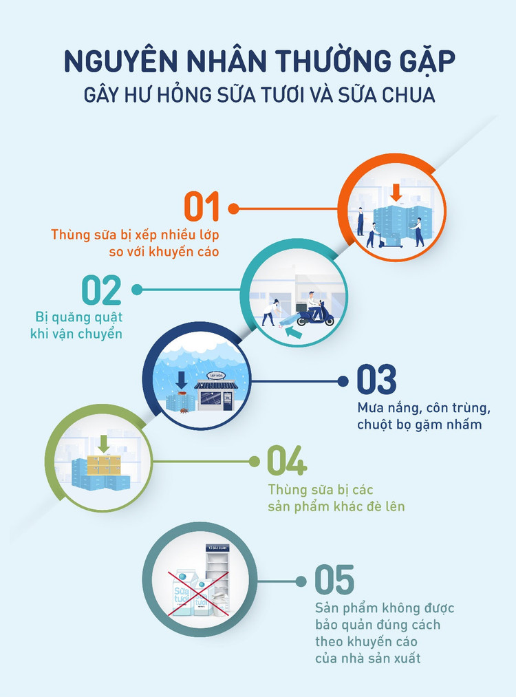Còn với các sản phẩm cần bảo quản lạnh như sữa chua hay sữa tươi thanh trùng, nguyên nhân hỏng thường do đại lý hoặc người tiêu dùng chưa bảo quản theo đúng khuyến cáo trên bao bì.
