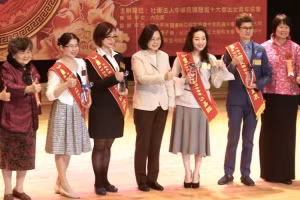 Nhà lãnh đạo Đài Loan Thái Anh Văn (trung tâm) cũng tham dự sự kiện tôn vinh phụ nữ nhân dịp kỷ niệm ngày Quốc tế phụ nữ 8/3 hồi năm ngoái. Ảnh: CNA.