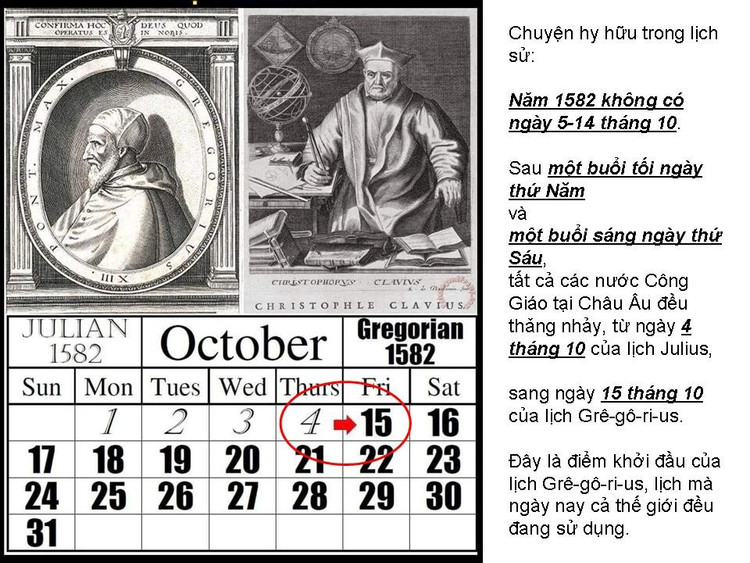 Nếu vào các ứng dụng lịch trên smartphone hoặc và quay ngược thời gian về lại năm 1582, người dùng sẽ thấy tháng 10 năm đó bị mất đi 10 ngày. Ngay sau thứ năm, ngày 4/10 là thứ sáu, ngày 15/10/1582. Đây không phải là lỗi lập trình hay người nào đó cố ý đùa giỡn, mà thật sự, 10 ngày này hoàn toàn không tồn tại trong lịch. Nguyên nhân nằm ở sự thay đổi cách người ta tính ngày, tháng, năm vào thế kỷ 16.
