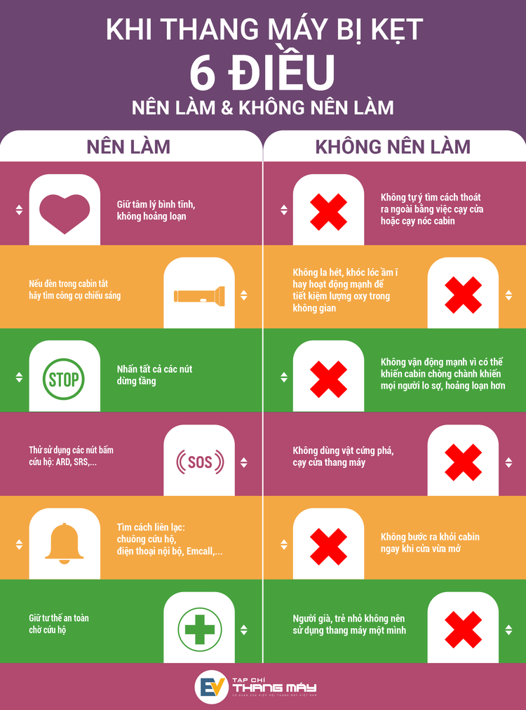 Tất nhiên, trong tình huống bất ngờ và hoảng sợ như thế này, việc bé gái 4 – 5 tuổi có những hành động như trên là dễ hiểu và không đáng trách. Dù vậy, các chuyên gia vẫn khuyến cáo người dân nên có hướng dẫn sử dụng thang máy kỹ lưỡng cho trẻ nhỏ, bao gồm cả việc sử dụng thang máy và cách xử lý trong các tình huống nguy hiểm xảy ra, đồng thời, cần hướng dẫn cả những việc không nên làm khi bị kẹt trong thang máy. Cụ thể, 6 điều nên và không nên làm khi thang máy bị kẹt là: