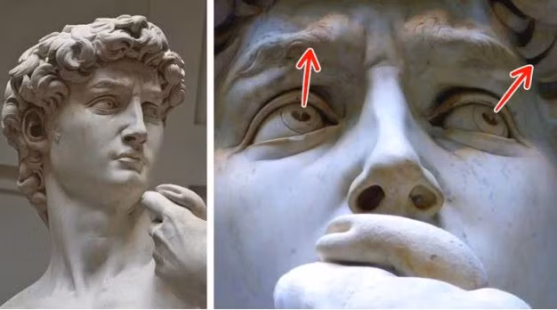Tượng David của Michelangelo là một kiệt tác mô tả cơ thể người nhưng nó lại có một điều vô cùng bất thường. Theo đó, người ta nhận thấy rằng mắt phải của David nhìn thẳng về phía trước trong khi đó, mắt trái dường như đang nhìn sang bên trái. Giải thích cho điều này, nhiều người cho rằng Michelangelo có lẽ đã tính toán mọi góc độ và khoét mắt dựa trên vị trí của người xem, vì vậy bức tượng sẽ trông hoàn hảo ngay cả khi được quan sát từ các phía khác nhau.
