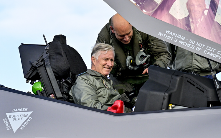 Vua Philippe của Vương quốc Bỉ trên buồng lái chiếc F-35 đầu tiên của Không quân Bỉ. Ảnh: Blegium VTR