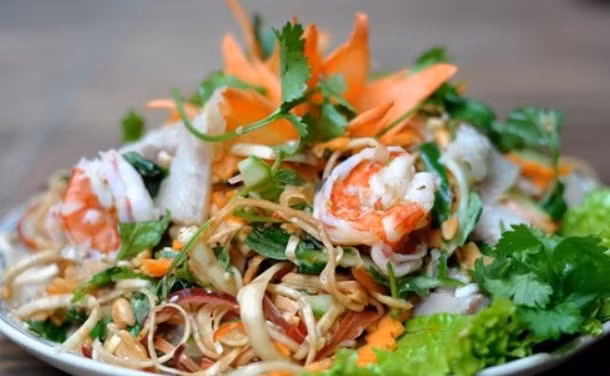 Ngoài ra, gỏi bưởi tôm thịt cũng là một lựa chọn tinh tế. Vị chua thanh, mọng nước của những tép bưởi hồng không chỉ giúp trung hòa độ béo của thịt ba chỉ mà còn cung cấp lượng vitamin C dồi dào, hỗ trợ quá trình chuyển hóa mỡ thừa ngay sau bữa ăn.