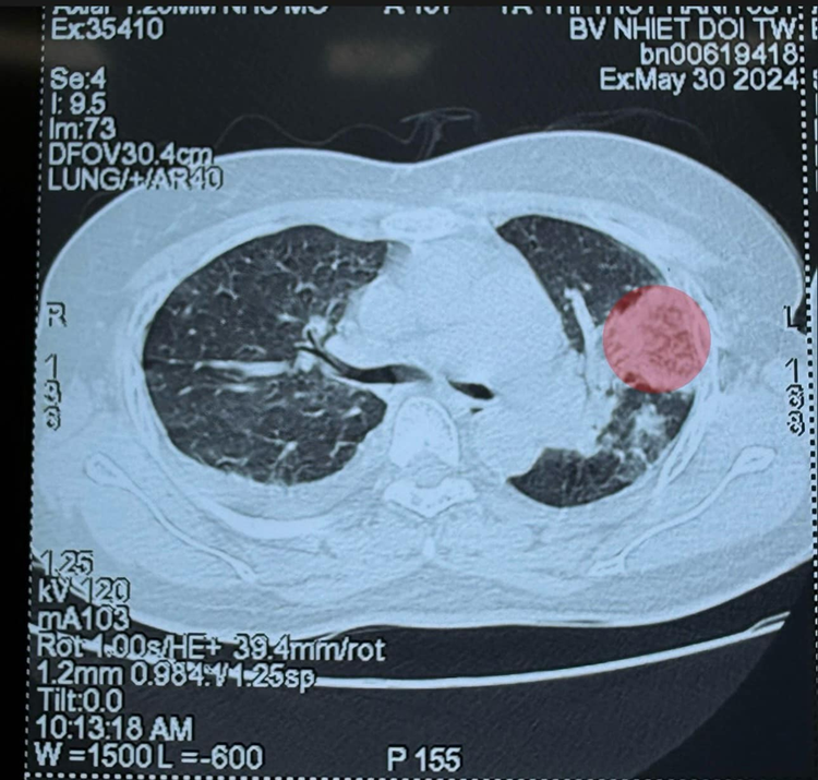 Bệnh nhân sốt xuất huyết đồng nhiễm vi khuẩn, phổi đông đặc