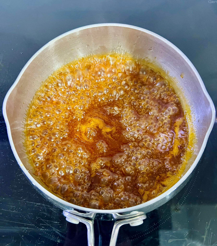 - Làm nóng quánh rồi phi thơm củ hành củ tỏi, cho chén nước sốt vào nấu sôi, sệt sệt lại là được, để nước sốt nguội.