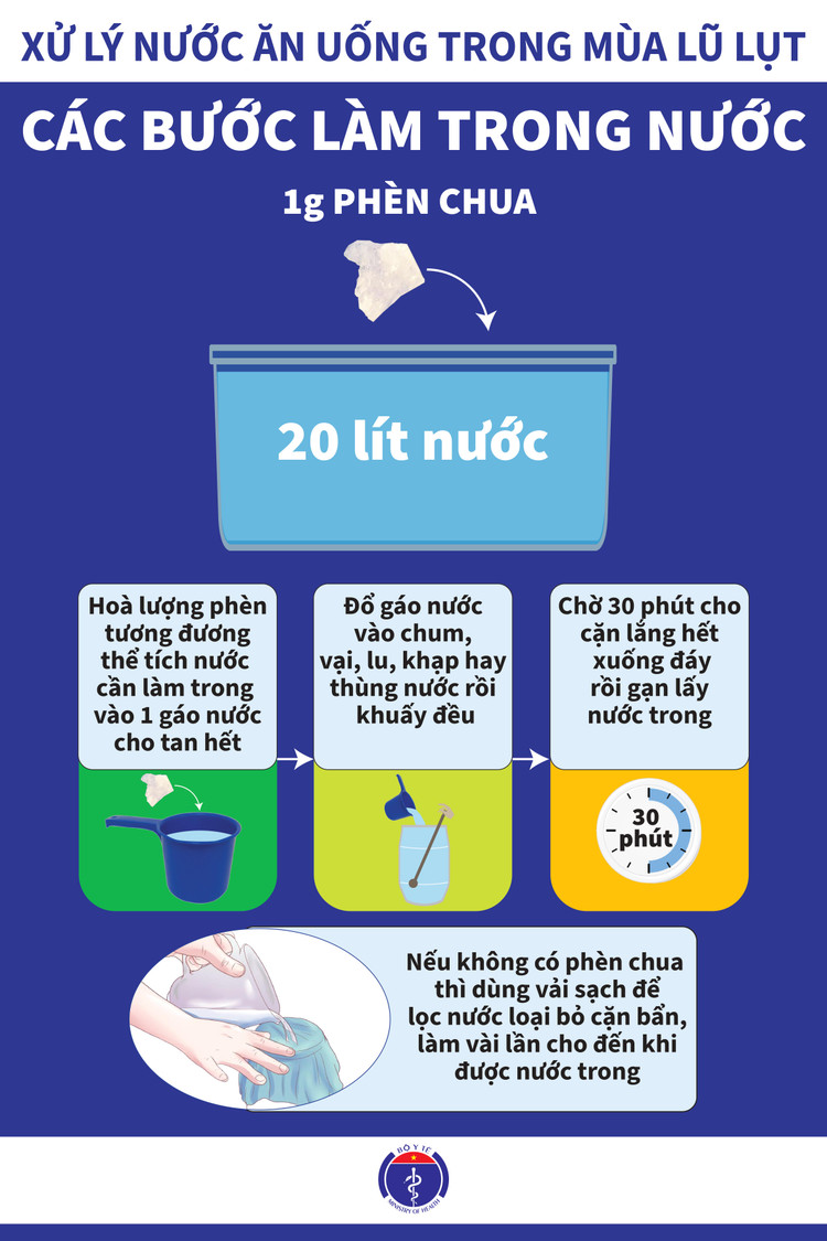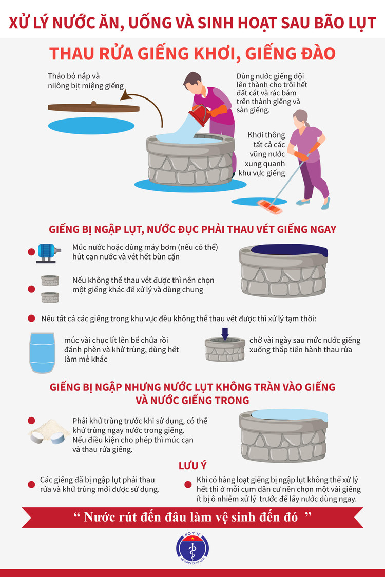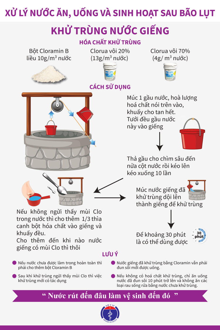 Bộ Y tế hướng dẫn xử lý nước và vệ sinh môi trường trong bão lũ