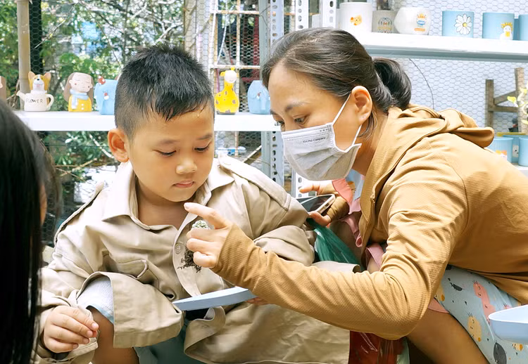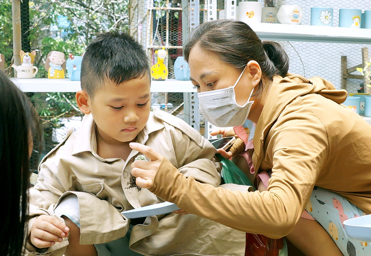 | Sau khi được mẹ hướng dẫn, bé đã chọn được cây mà mình ưa thích. |