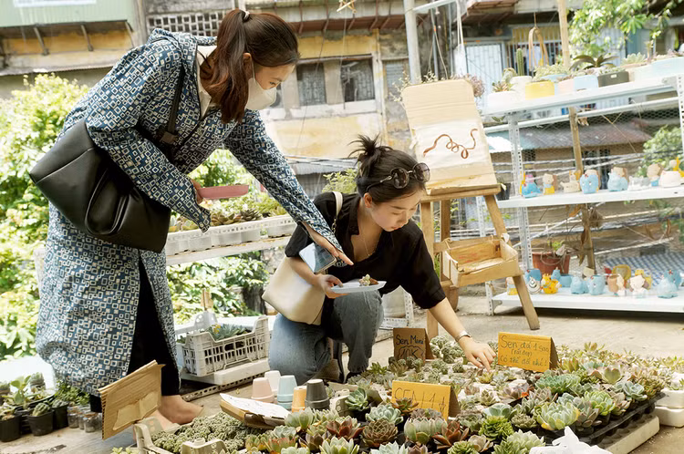 Thu Ngân và Minh Nguyệt, sinh viên năm cuối Đại học Luật mang gần chục chai nhựa đến đổi lấy cây sen đá, ngoài ra hai bạn còn mua thêm những sản phẩm thân thiện với môi trường khác. Hai bạn cho biết vì cảm giác thấy đây là nơi đáng tin cậy để xử lý rác thải nhựa và cùng đó lại có thêm cây xanh rất xinh mang về trồng ở nhà. Việc đổi chai nhựa lấy cây ngoài giảm chất thải nhựa ra môi trường thì thói quen trồng cây xanh rất là tốt, trồng được cây cũng góp phần làm xanh sạch đẹp cho môi trường.