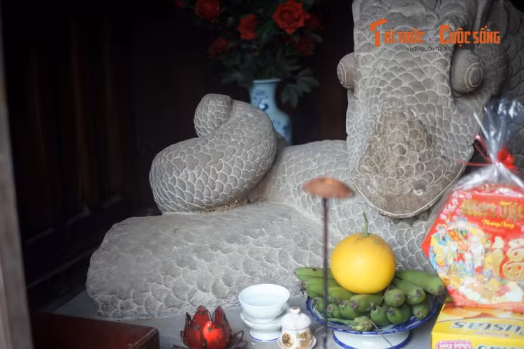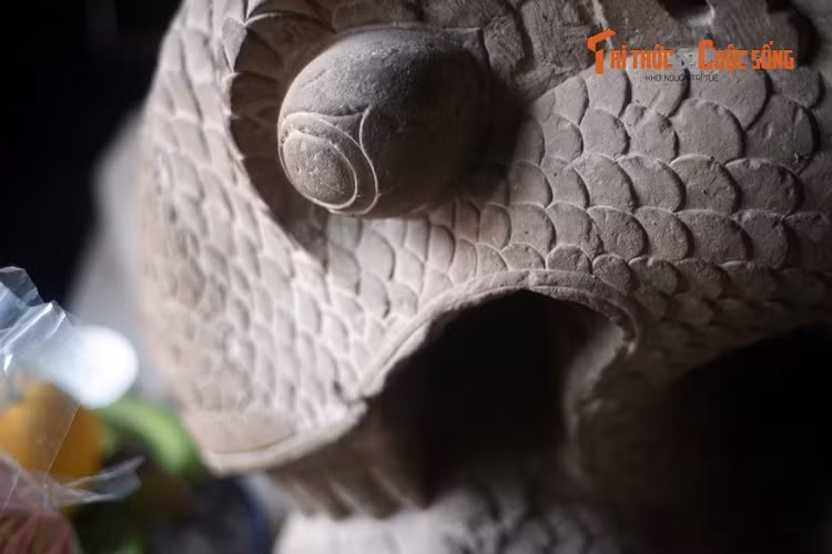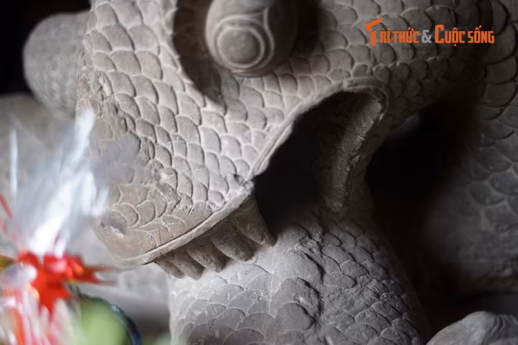 Đặc biệt, tượng rồng đá / xà thần được tạo hình với tư thế "miệng cắn thân, chân xé mình" được đánh giá là hết sức kỳ lạ. Trong suốt chiều dài của nền điêu khắc cổ Việt Nam và khu vực Đông Nam Á không có bức tượng nào như vậy.
