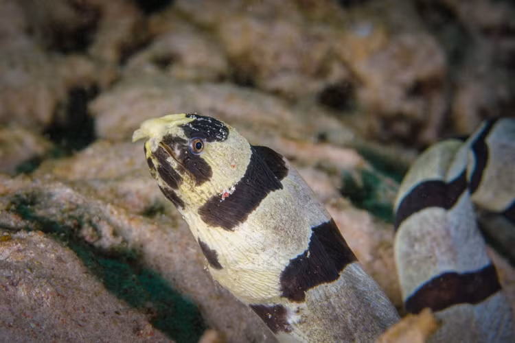 Cá nhệch khoang (Myrichthys colubrinus), còn được gọi là “lươn rắn khoang”, là một trong những ví dụ ấn tượng nhất của hiện tượng bắt chước trong tự nhiên. Thuộc họ cá chình rắn, loài này phân bố rộng rãi ở các vùng biển nhiệt đới Ấn Độ Dương – Thái Bình Dương, đặc biệt quanh các rạn san hô và vùng đáy cát nông. Điều khiến nó trở nên nổi bật không phải kích thước hay sức mạnh, mà là vẻ ngoài đánh lừa gần như hoàn hảo.