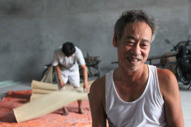 Đó là ông Nguyễn Xuân Hòa, tuổi ngoài 70 nhưng vẫn còn đau đáu với nghề. Năm 2000, sau chuyến đi vào Nam tìm hiểu các làng chiếu, thậm chí ông cất công sang tận Quảng Tây – Trung Quốc để tận mắt thấy cách làm chiếu công nghiệp.
