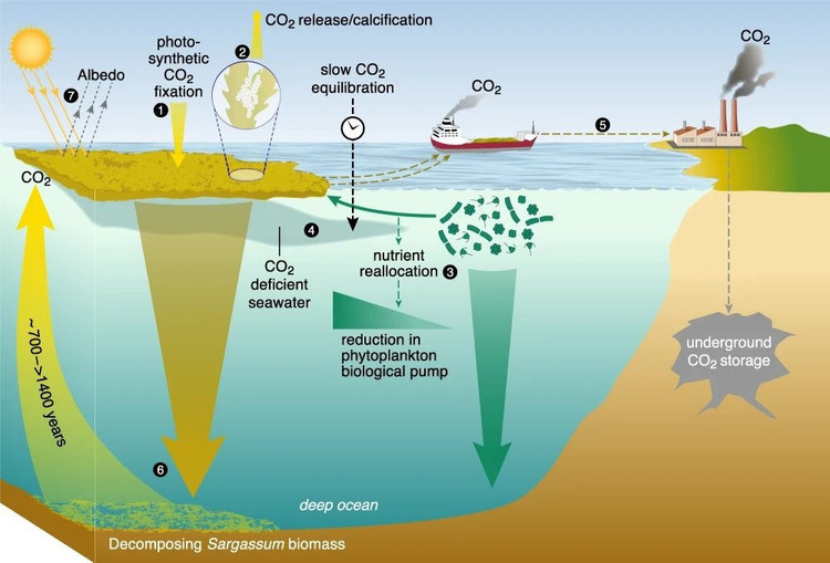 Phương án sử dụng Sargassum, một chi tảo nâu trong bộ Fucales, phân bổ rộng rãi ở vùng ôn đới và nhiệt đới để hấp thu CO2 trong nước biển.