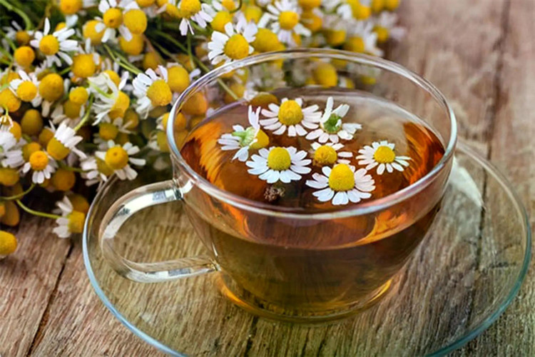 Bạn có thể pha trà từ hoa cúc tươi hoặc khô đều được. Trà hoa cúc không chỉ có tác dụng an thần, giúp dễ ngủ mà còn làm giảm hoặc ngăn ngừa sự co thắt của ruột và dạ dày, từ đó hỗ trợ quá trình tiêu hóa nhanh, đẩy lùi tình trạng ợ hơi, đầy bụng.