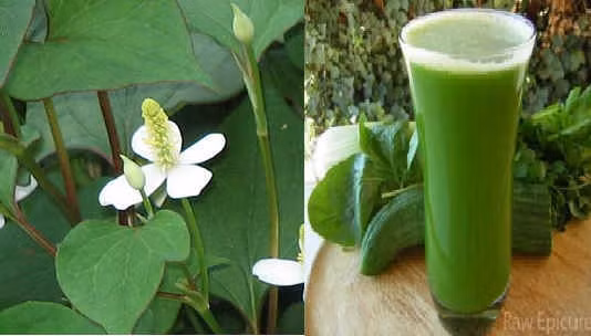 2. Uống nước ép rau diếp cá: Cách này phổ biến nhất đối với trường hợp không ăn được rau diếp cá do mùi tanh hơi đặc biệt của nó. Bạn hãy lấy lá rau diếp cá, rửa sạch rồi cho vào máy ép lấy nước. Đối với trẻ con khó uống thì có thể cho thêm vài hạt muối hoặc chút đường. Lưu ý uống liên tục mỗi ngày 1 cốc tới khi khỏi bệnh