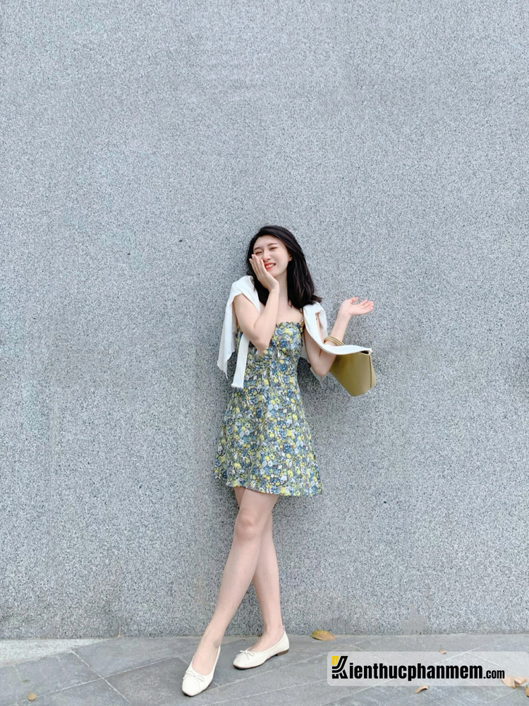 Với cách tạo dáng chụp hình này, bạn nên đứng hơi nghiêng nhẹ người ra sau, bắt chéo chân để có cảm giác đôi chân dài miên man. Bên cạnh đó, bạn cũng có thể dùng một tay cầm tà váy, túi xách, tay còn lại để sau lưng, vậy là bạn đã có ngay một tấm ảnh xinh xắn.