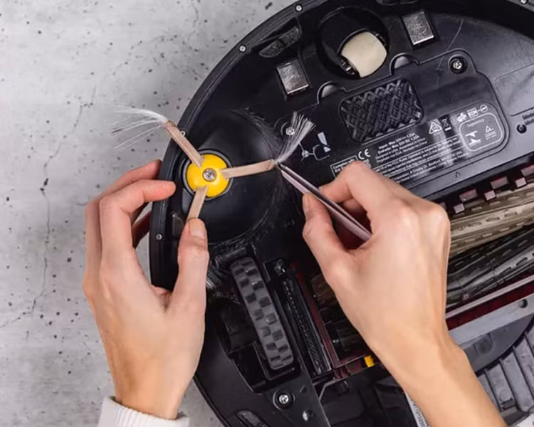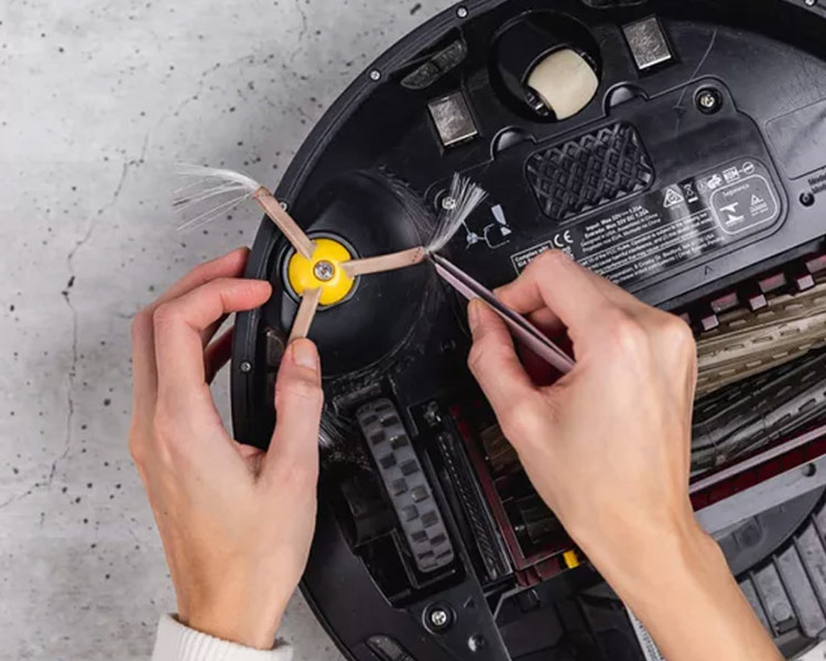 Cuộn chổi là bộ phận quan trọng của robot hút bụi gồm chổi cạnh, chổi chính, và miệng hút cuộn chổi. Cách vệ sinh của bộ phận này là:
